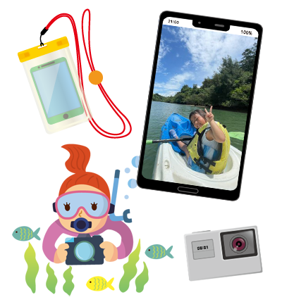 カヤック&フィッシングの撮影データは無料でプレゼント(Airdrop・LINE・メール etc.)、シュノーケルの撮影データは、水中カメラを使用致しますので販売となります。